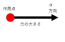 赤●が作用点なら右方向に→の大きさだけ力が働いていることになります。